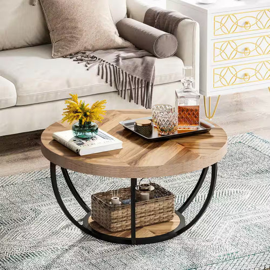 Cans 31.5 In. round Wood Coffee Table Modern Industrial Cocktail Table with Metal Frame for Living Room
