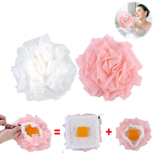2 in 1 Bath Loofah Sponge with Drawstring Bath Ball Bath Loofah Shower Washcloth Set for Women Men